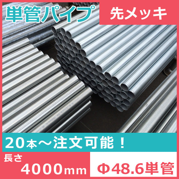 (送料別途)Φ48.6単管パイプ(先メッキ) 4000mm 肉厚2.4mm プレパイプ バタ PZ